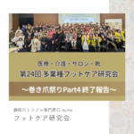 - 他業種フットケア研究会先日他業種フットケア研究会のセミナーに参加して来ました☺️看護士さんや介護士さんフットケアセラピストさんに混じ… 続きを読む: 他業種フットケア研究会